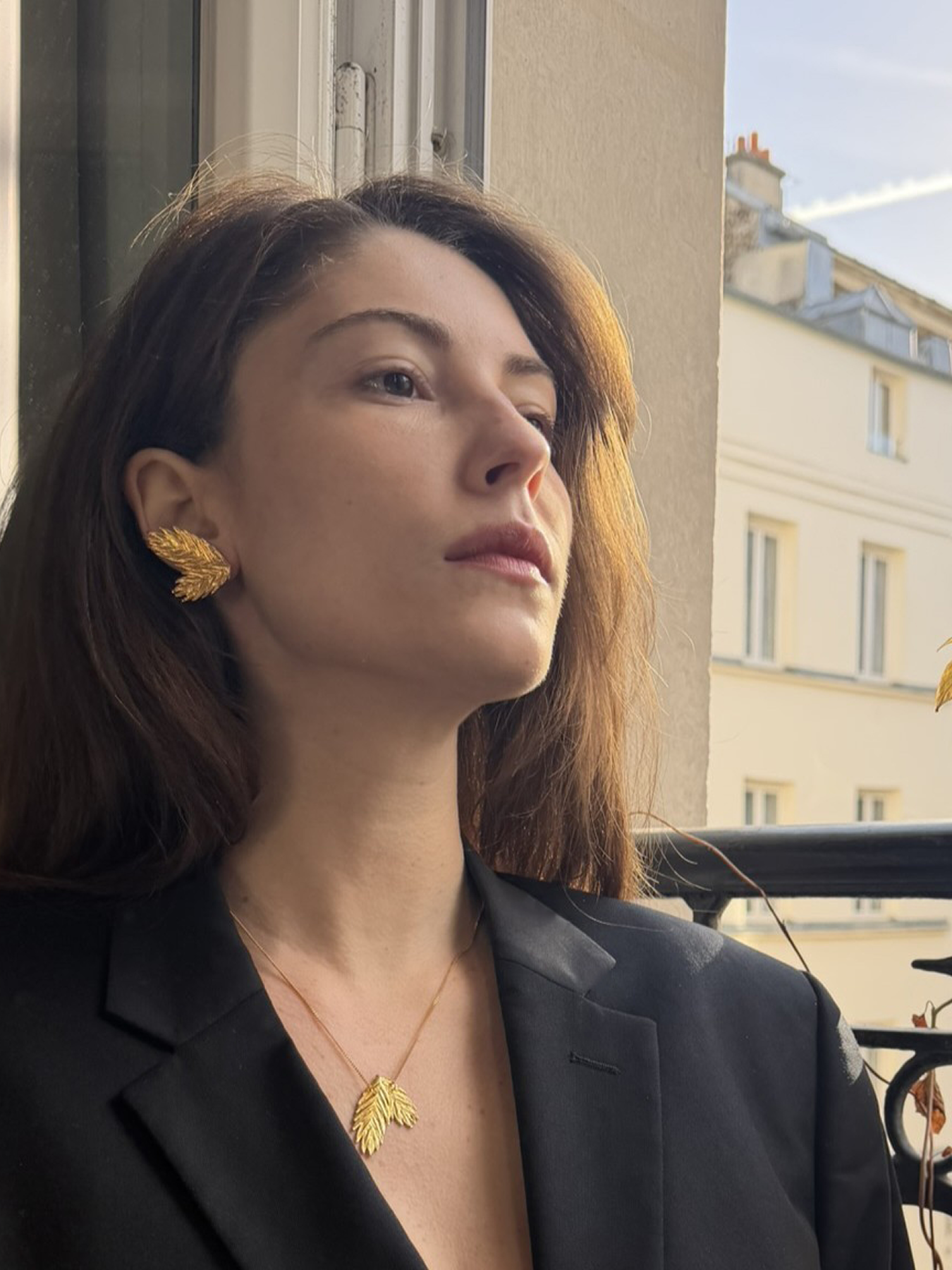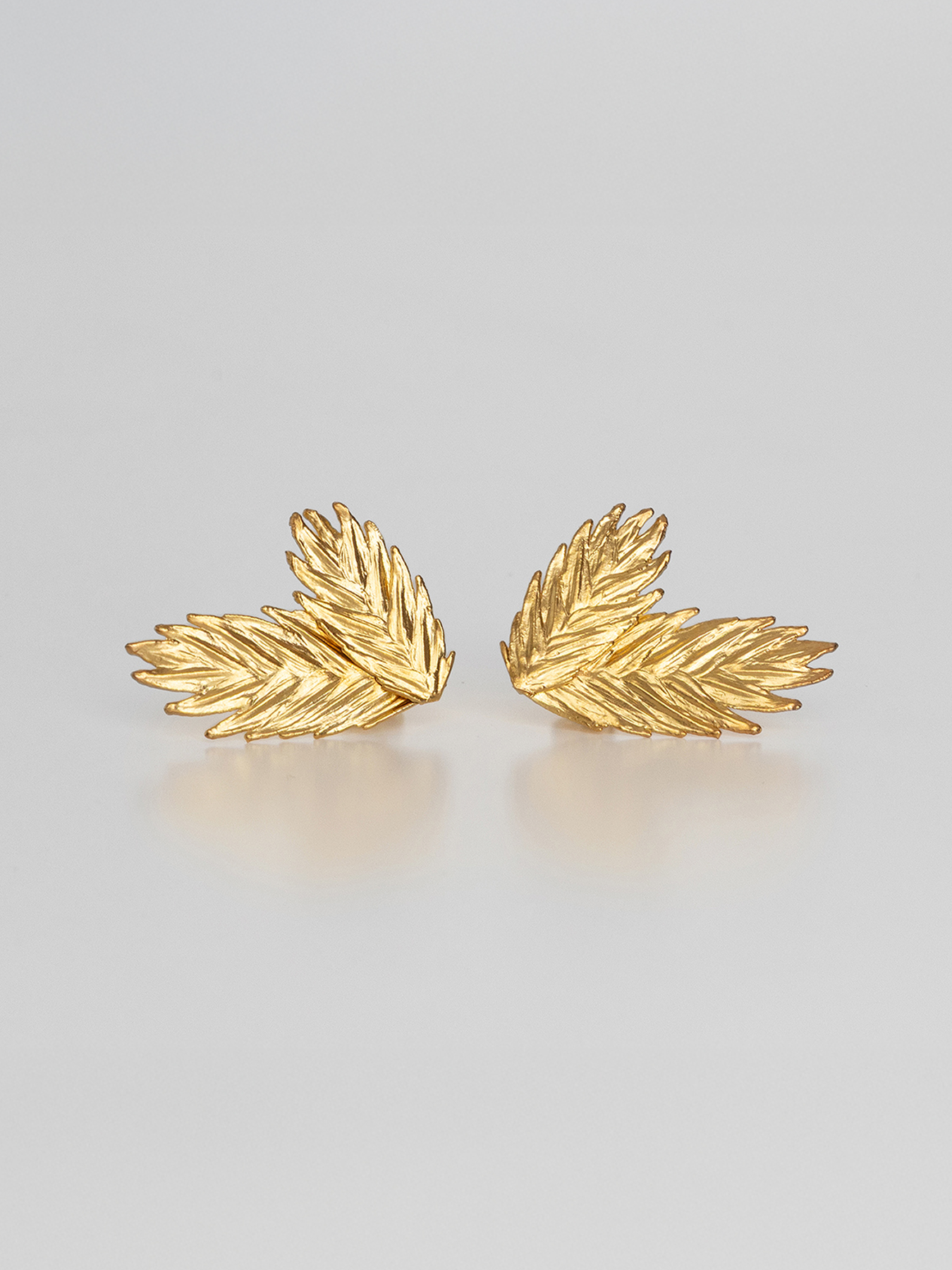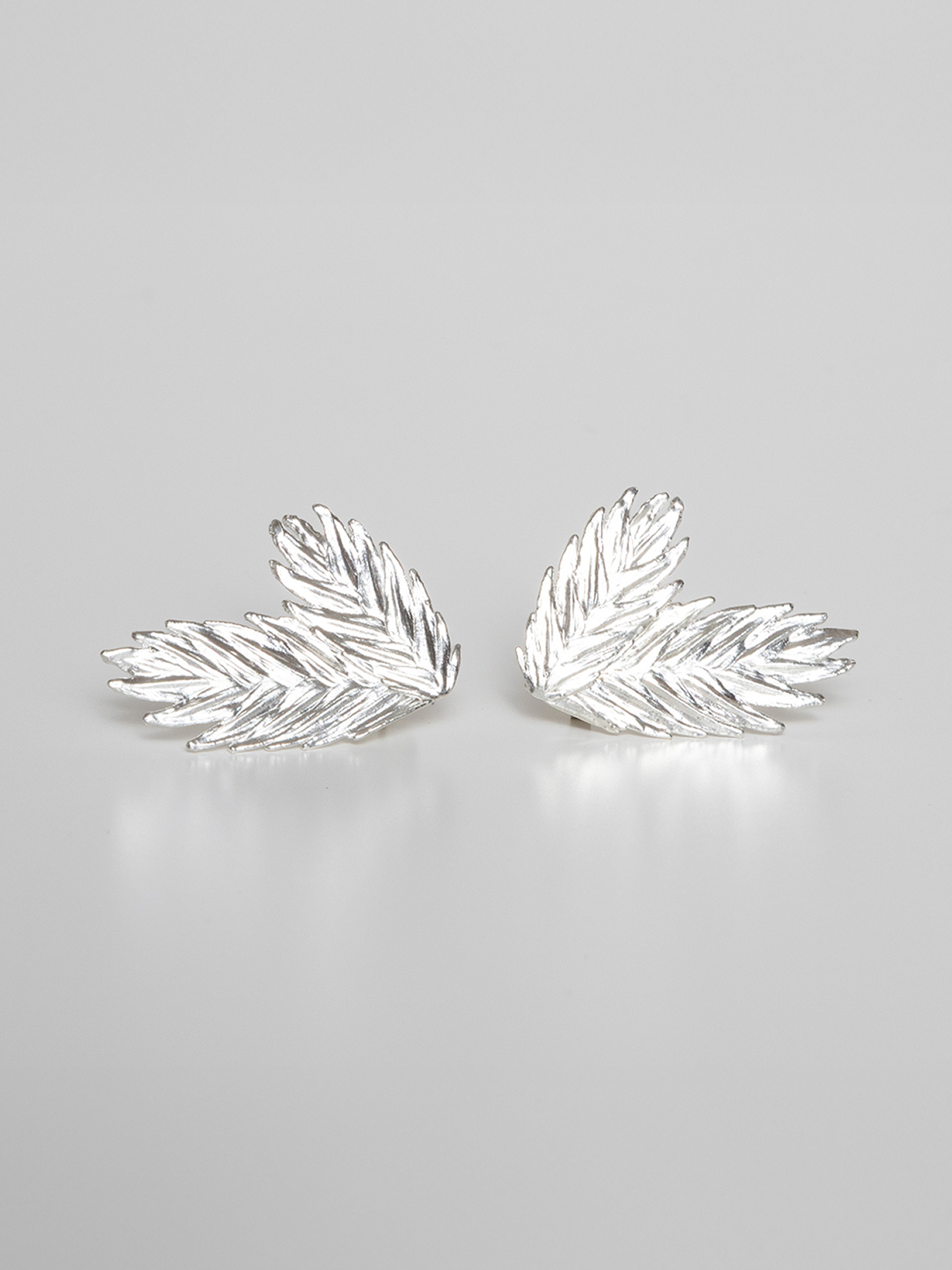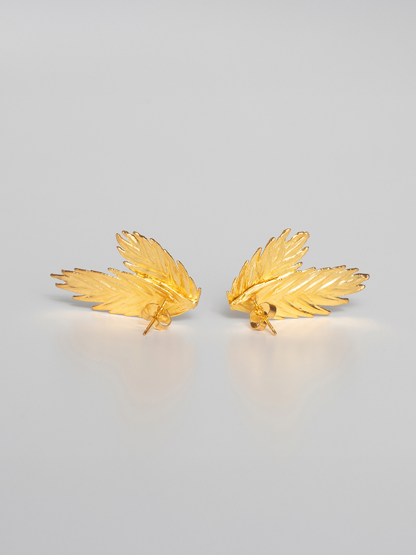 Inspired by the natural rhythm of leaves, these earrings translate the leaf’s flowing lines and textures into metal. Their light yet expressive form creates a balanced presence - both elegant and sculptural, capturing movement and quiet beauty with every wear.